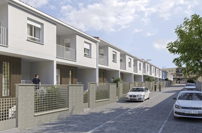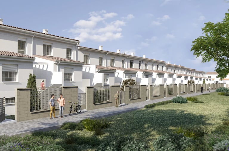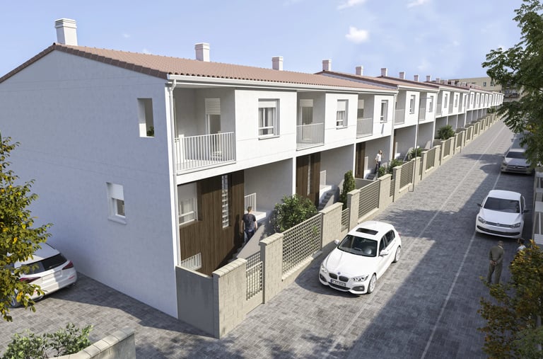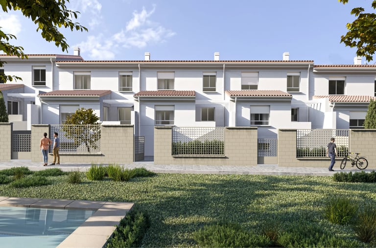 Uno de los grandes atractivos de esta promoción es su piscina comunitaria, que actúa como punto de encuentro para vecinos y familias, aportando valor y bienestar sin suponer un sobrecoste, ya que el precio de las viviendas sigue siendo muy competitivo y accesible.
