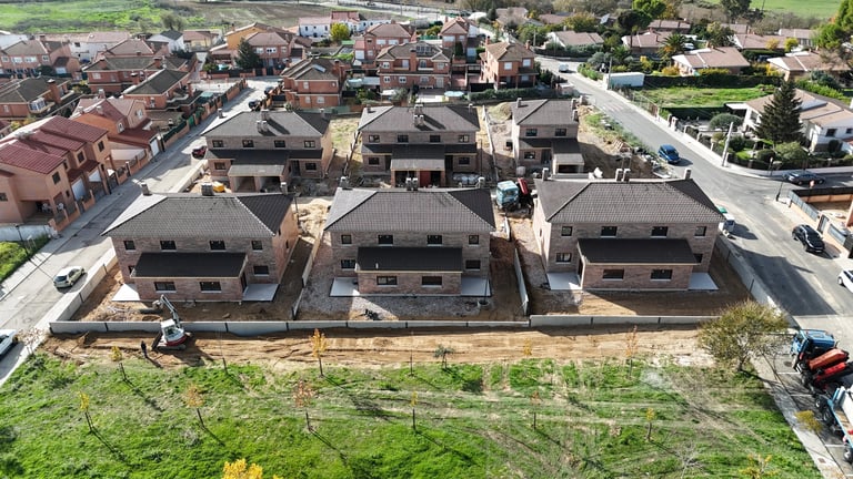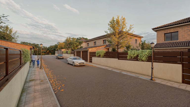 En la actualidad, estamos llevando a cabo la construcción de 10 viviendas pareadas y una vivienda aislada en Valdeavero, un encantador municipio de Madrid. Su proximidad a Alcalá de Henares, una ciudad donde la vivienda es escasamente accesible por la elevada demanda y los altos precios, nos permite ofrecer una alternativa de calidad a pocos minutos de grandes localidades como Alcalá y Guadalajara. La promoción se ubica en una zona totalmente consolidada y tranquila, ideal para disfrutar de la vida en entornos abiertos, gracias a los magníficos patios de nuestras viviendas. Estas casas cuentan con 187 m² construidos y parcelas que van desde 250 m² hasta 441 m², proporcionando espacios amplios y confortables para sus futuros habitantes.