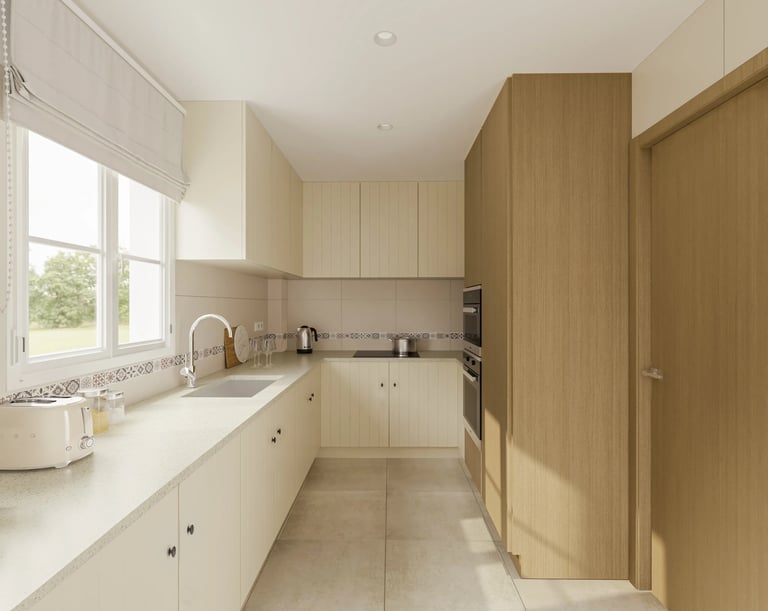 Nuestro trabajo ha consistido en completar cada vivienda respetando lo ya ejecutado con calidad, y aportando un estilo más actual y funcional, sin perder la esencia del proyecto original. Hemos aprovechado al máximo los elementos existentes que se encontraban en buen estado, armonizándolos con acabados contemporáneos, materiales cuidadosamente seleccionados y una distribución pensada para crear hogares cómodos, cálidos y duraderos.