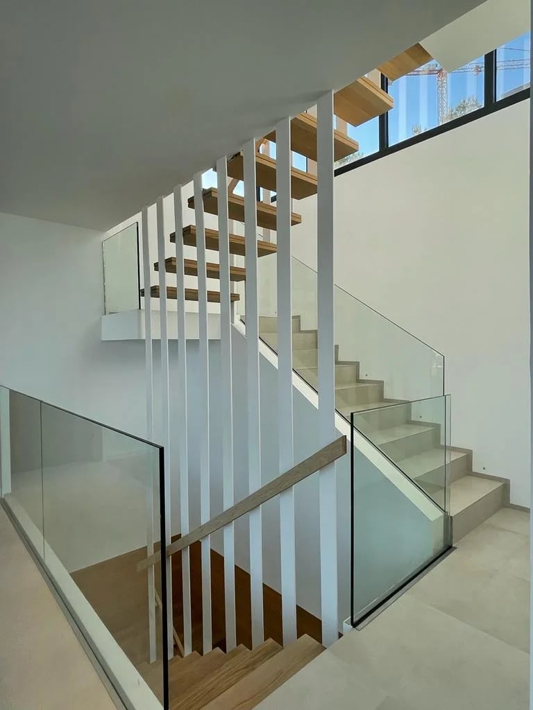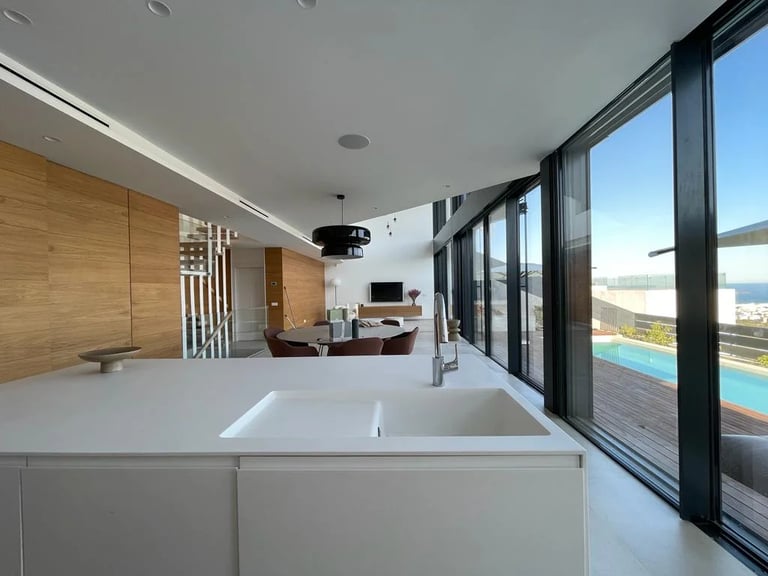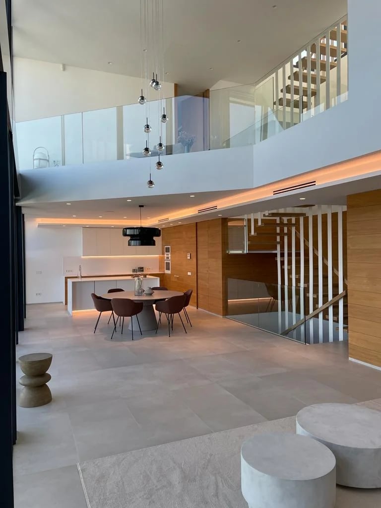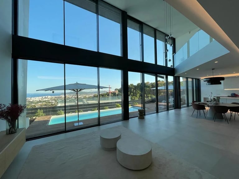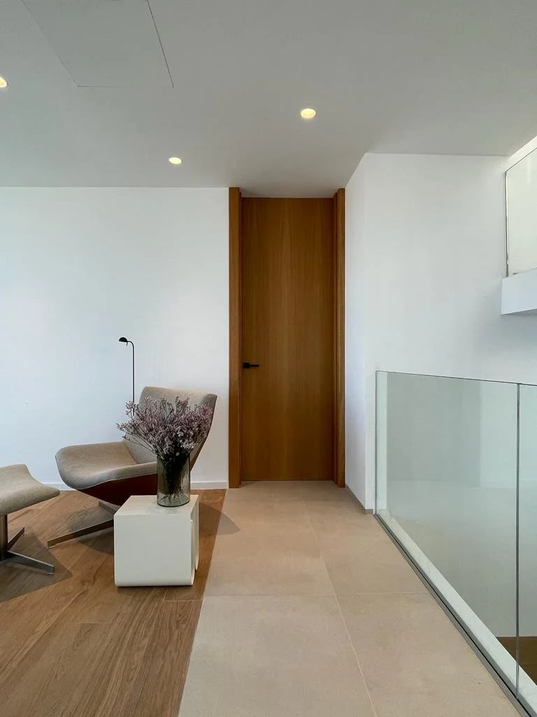 Esta villa, situada en una zona privilegiada junto al mirador de Benimusa en Ibiza, ofrece un espectáculo visual inigualable. Su ubicación en una ladera permite disfrutar de vistas directas a la ciudad y al mar, creando un ambiente único y privilegiado. La ingeniosa arquitectura de la vivienda se adapta al desnivel del terreno, permitiendo el acceso a través de la cubierta, la cual se ha habilitado como zona de parking. Este diseño singular provoca una experiencia emocionante al descender por las escaleras colgantes, donde cada paso revela panorámicas deslumbrantes. La estructura de hormigón armado, con su morfología contundente, se complementa con espacios luminosos que están impregnados de vistas encantadoras, haciendo de esta villa un verdadero refugio visual en el corazón de Ibiza.